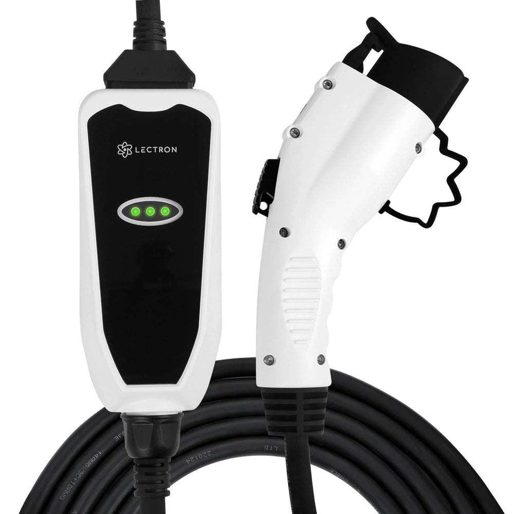 UNIVERSAL CHARGING - Lectron's portable charger for J1772 EVs comes with a NEMA 5-15 plug, providing up to 6 miles of range per hour, and NEMA 14-50 plug, providing up to 31 miles of range per hour